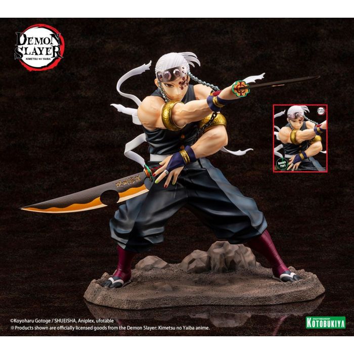 The detailed design of his headband and Nichirin Blades have also been faithfully reproduced. Extra attention was paid to accurately sculpting his rippling muscles, which further showcases his strength and fortitude.
