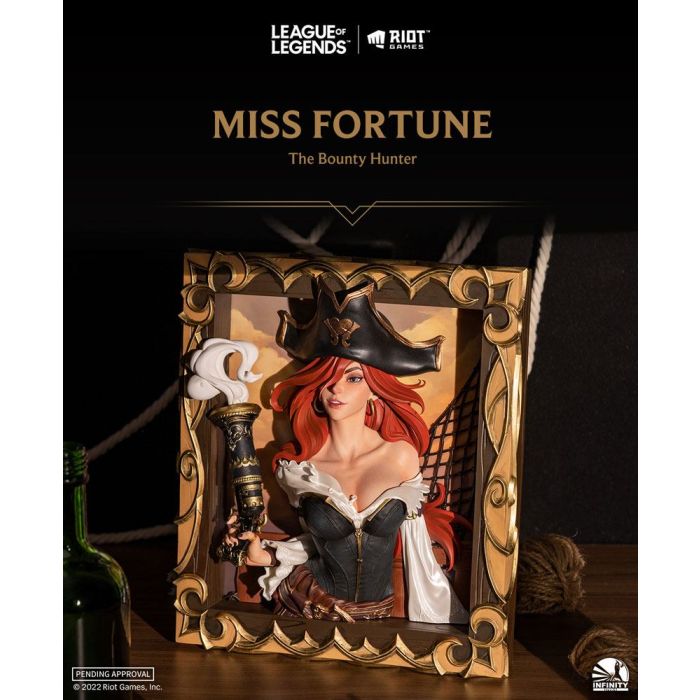 The border pattern of the frame as well as the details of the character is so delicately molded, highlighting the power and image of Miss Fortune's capability to have everything under control.